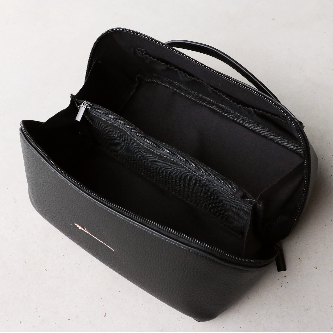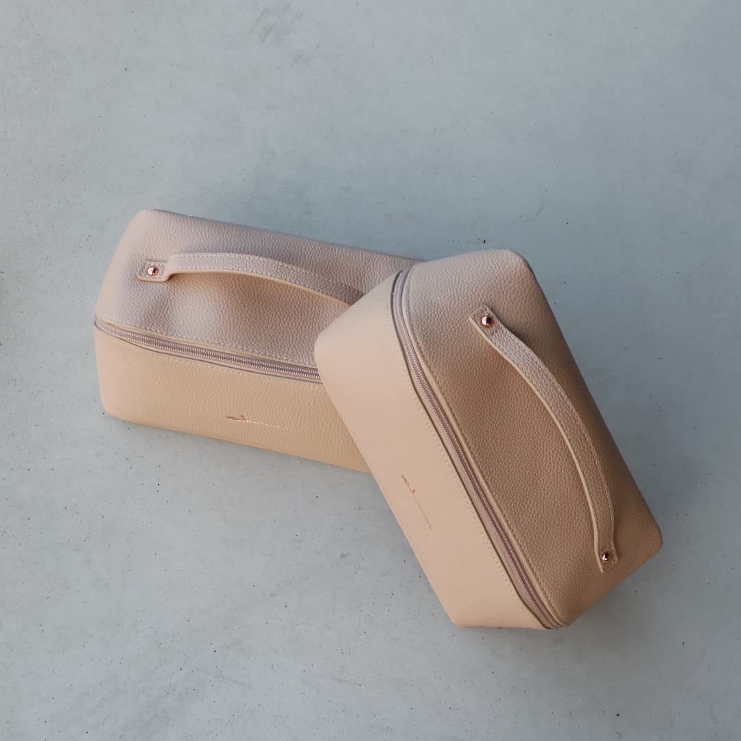 Toalettmappe i en deilig eksklusiv sandfarge med rose gold detaljer. NÅ også i sort! Den er god og romslig, her får du plass til det meste. Inni finner du lommer på hver side, samt en transparent lomme i midten som er helt genial. Her kan du legge jewelry, eller andre små viktige ting som er kjekt å finne enkelt, Denne lommen fungerer også som en romdeler. Kanskje kan du ha sminken på den ene siden og hudpleie i den andre? 🥰 Veldig praktisk! Toalettvesken er stødig og god i "skinnet". Du kan trygt legge sminken i denne ... and flyy away ✈️🏝️